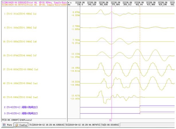 故障发生后,调取保护动作录波数据及事件记录进行分析,根据保护装置录波及记录分析如下: