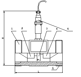 1.过滤器 2.前直管段 3.叶轮 4.前置放大器 5.壳体 6.后直管段