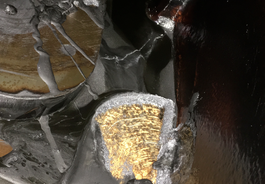 2.减速机为外置低压稀油站润滑,机子拆开后,检测润滑油严重失效,发黑,粘度降低,内部铁粉沉积严重。